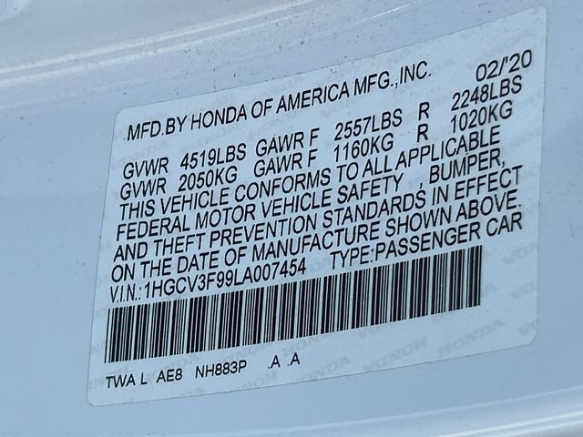 White 2020 Honda Accord Hybrid Touring FWD eCVT 2.0L 4-Cylinder DOHC 16V i-VTEC 2.0L 4-Cylinder DOHC 16V i-VTEC.