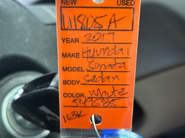 Quartz White Pearl 2017 Hyundai Sonata FWD 6-Speed Automatic with Shiftronic 2.4L I4 DGI DOHC 16V ULEV II 185hp Gray Cloth.