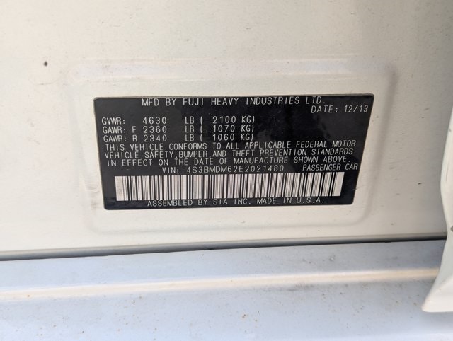 Satin White Pearl 2014 Subaru Legacy 3.6R Limited AWD 5-Speed Automatic 3.6L Boxer H6 DOHC 24V