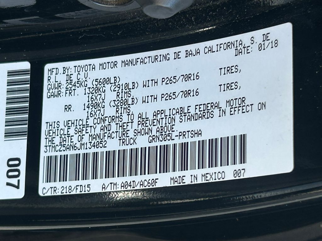 Midnight Black Metallic 2018 Toyota Tacoma TRD Off-Road V6 4WD 6-Speed Automatic 3.5L V6 PDI DOHC 24V LEV3-ULEV70 278hp 4WD.