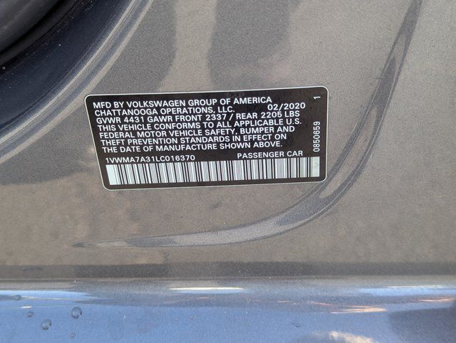 Platinum Gray Metallic 2020 Volkswagen Passat 2.0T R-Line FWD 6-Speed Automatic with Tiptronic 2.0L I4 TSI Turbocharged Titan Black Premium Synthetic.